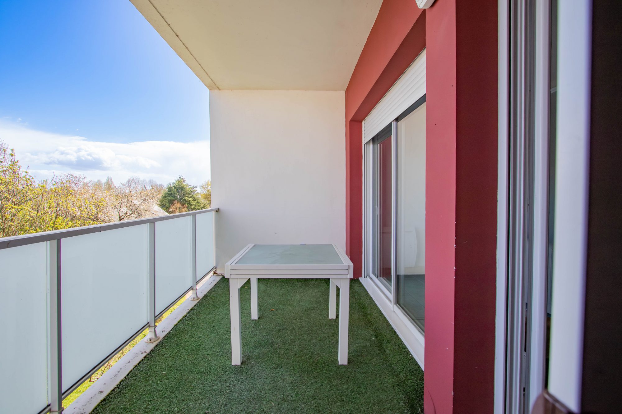 L’appartement dispose également d’une terrasse de 8 m², idéale pour profiter des moments de détente en plein air. La vue sur la verdure et l’exposition Est-Ouest garantissent une luminosité optimale tout au long de la journée.