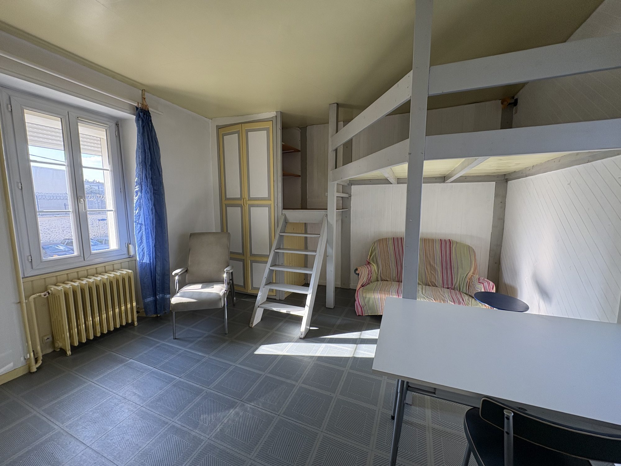 Salon-séjour, avec placard, sur carrelage