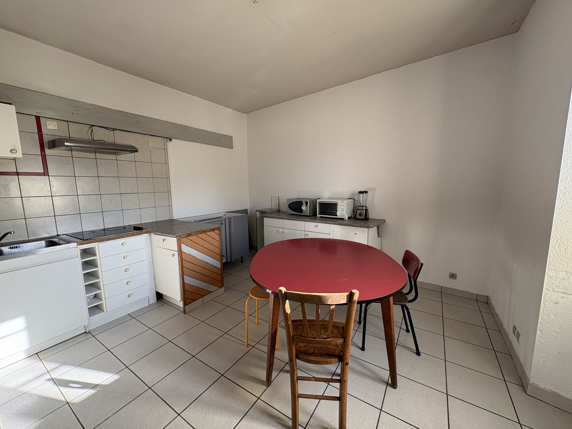 Cuisine avec kitchenette, sur carrelage