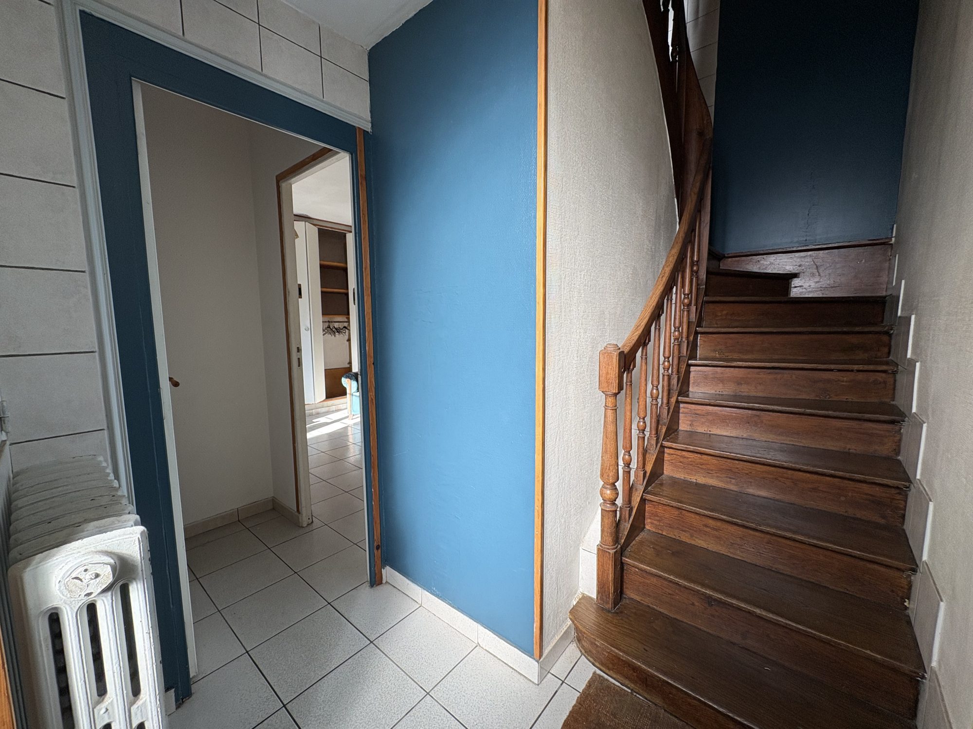 Entrée, sur carrelage, accès escalier cuisine et salon