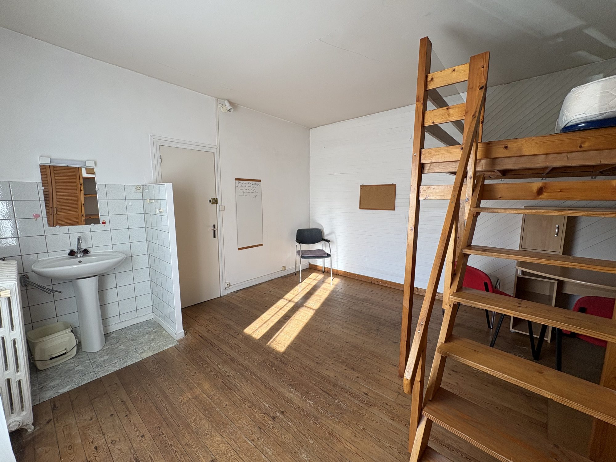 Chambre 1, à droite sur palier, placard, lavabo, sur vinyl