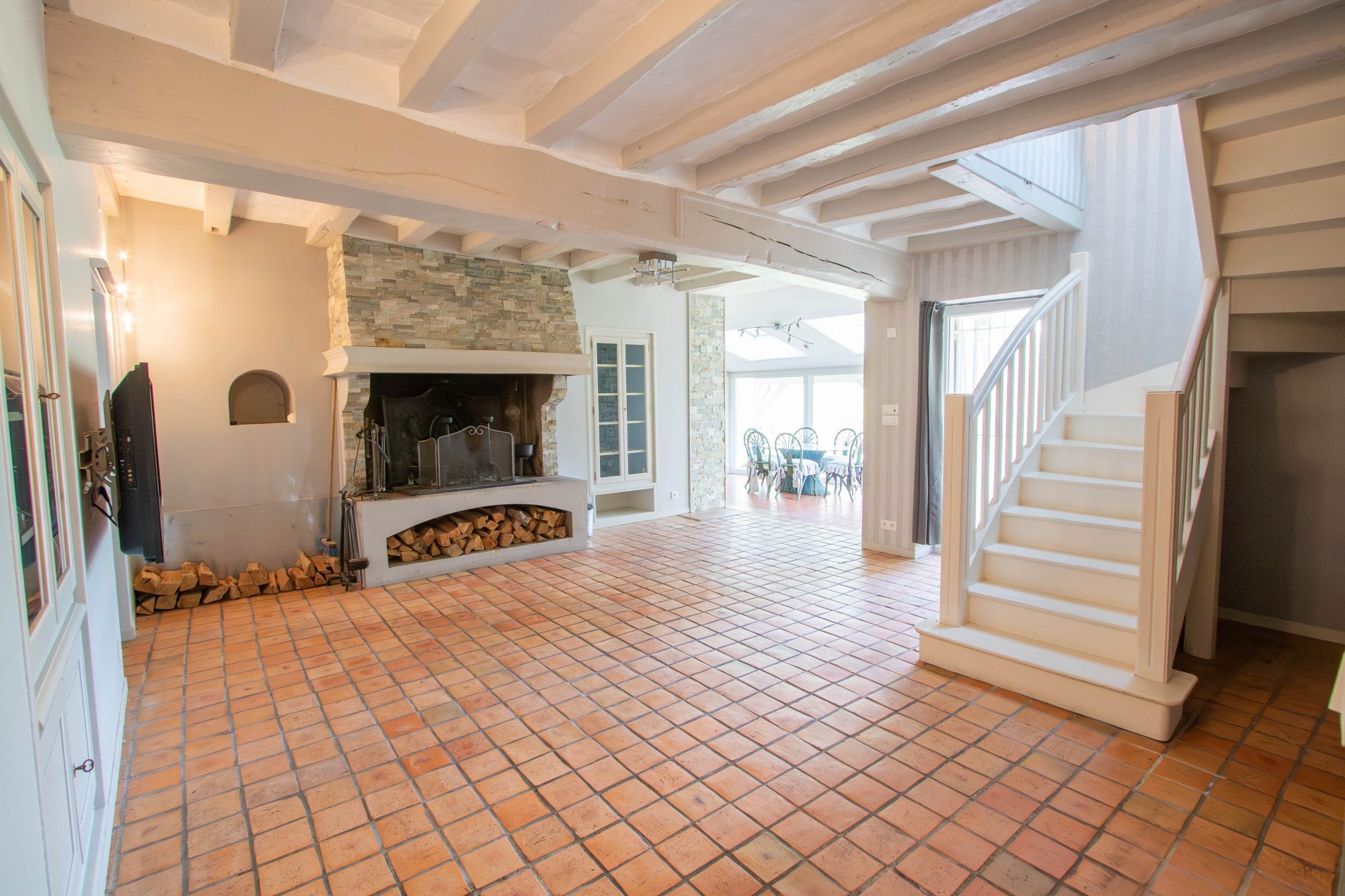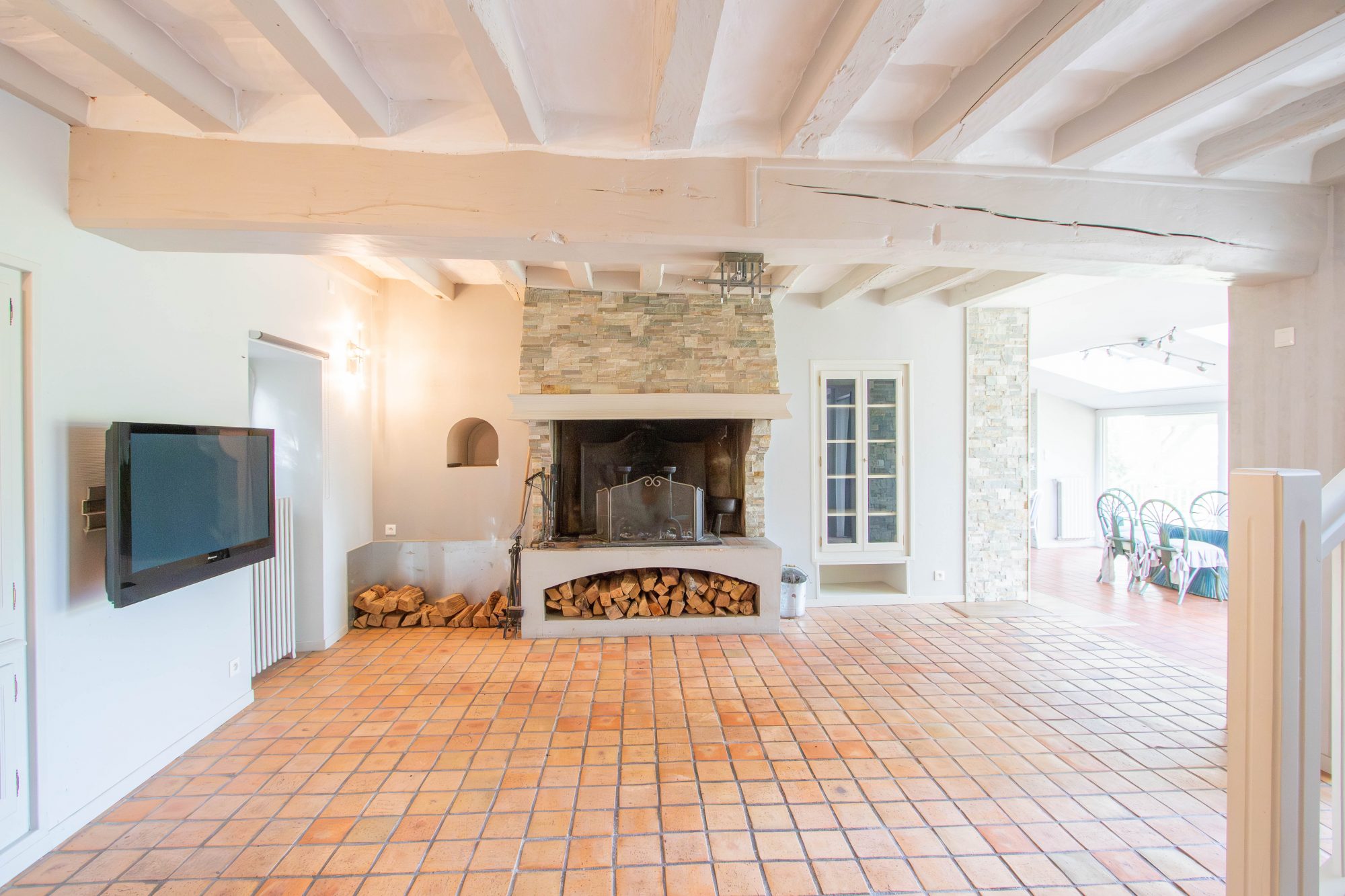 SEJOUR SALON SUR TOMETTES AVEC ACCES TERRASSE ET CHEMINEE