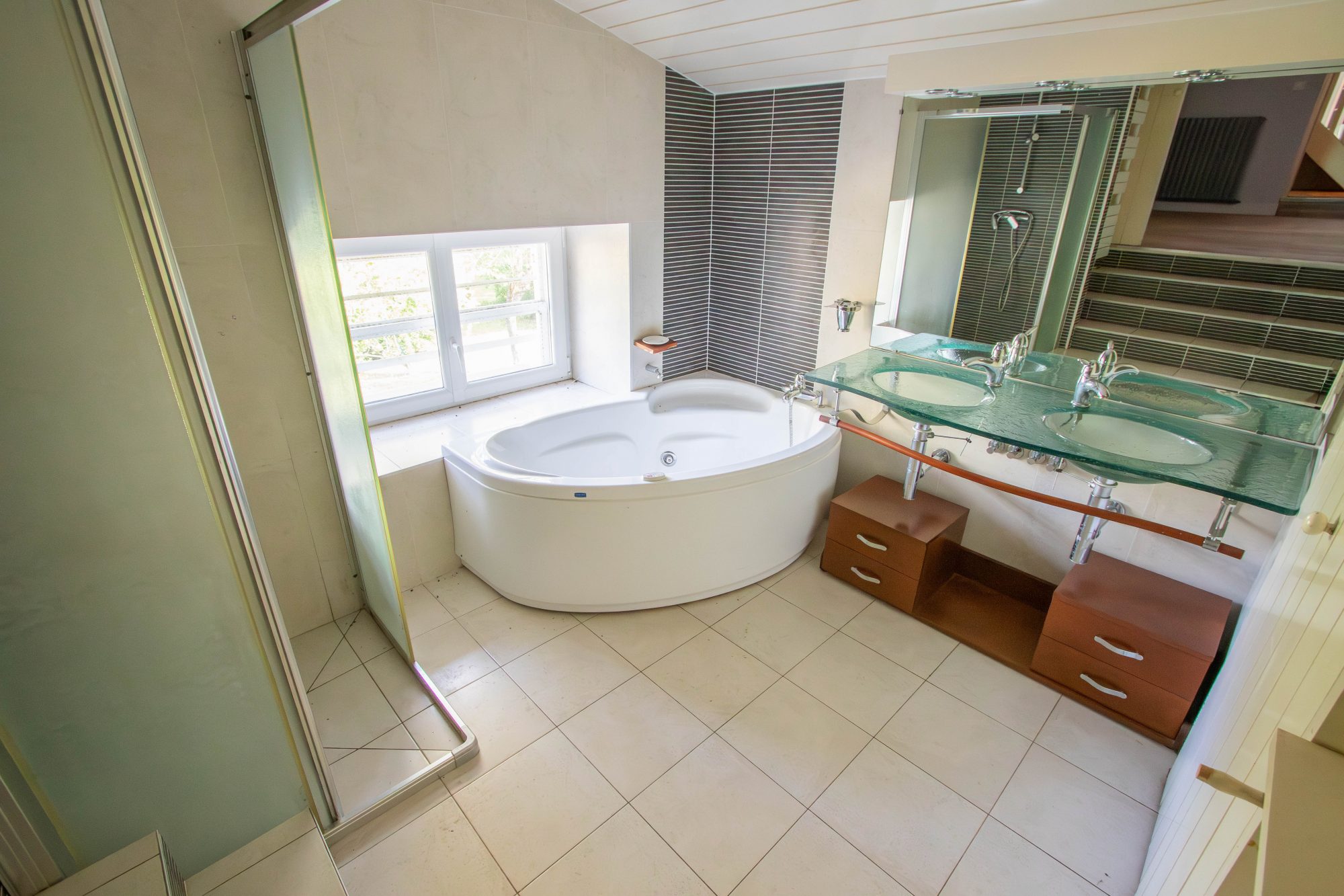 SDB AVEC BAIGNOIRE DOUCHE ET DOUBLE VASQUE