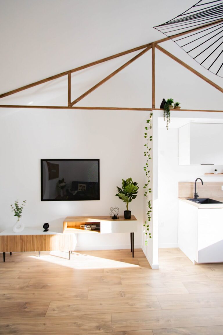 Imaginez-vous dans votre spacieux séjour de 22 m², baigné de lumière grâce à ses grandes ouvertures en bois/PVC à double vitrage. La cuisine ouverte, aménagée et équipée (four, plaques, hotte, lave-vaisselle), est un véritable atout. La chambre, confortable et lumineuse, vous garantit du confort. De plus dans la partie bureau, vous bénéficiez d’une mezzanine (environ 6,00m²) pour y ajouter un lit ou du rangement. Un véritable atout dans l’optimisation.