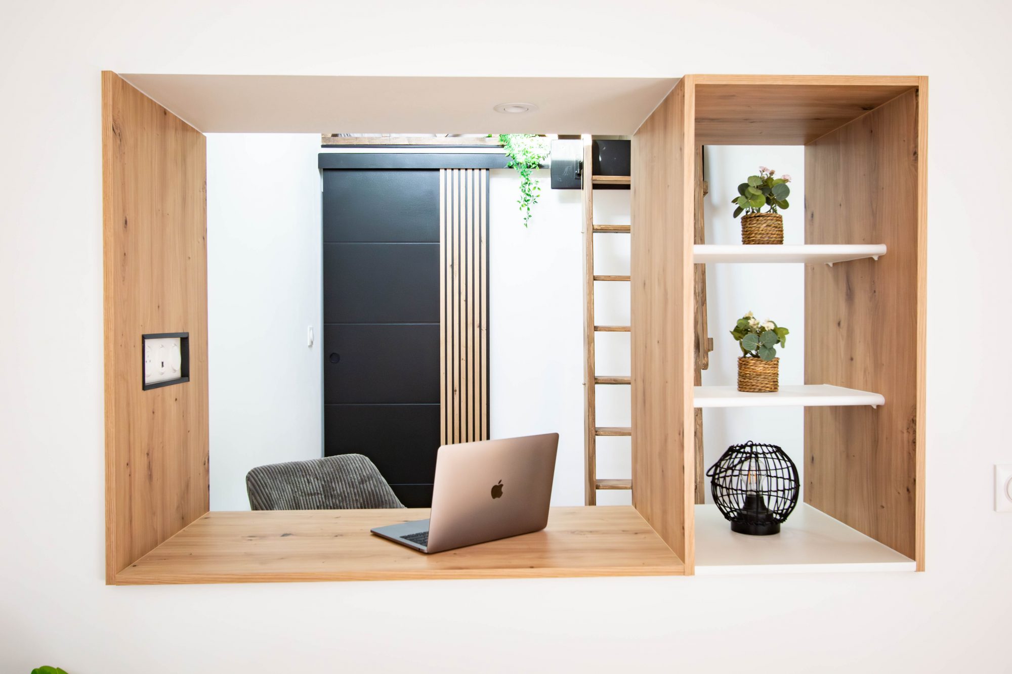 Bureau, mezzanine (6,00m²), parquet hydrofuge, volet électrique