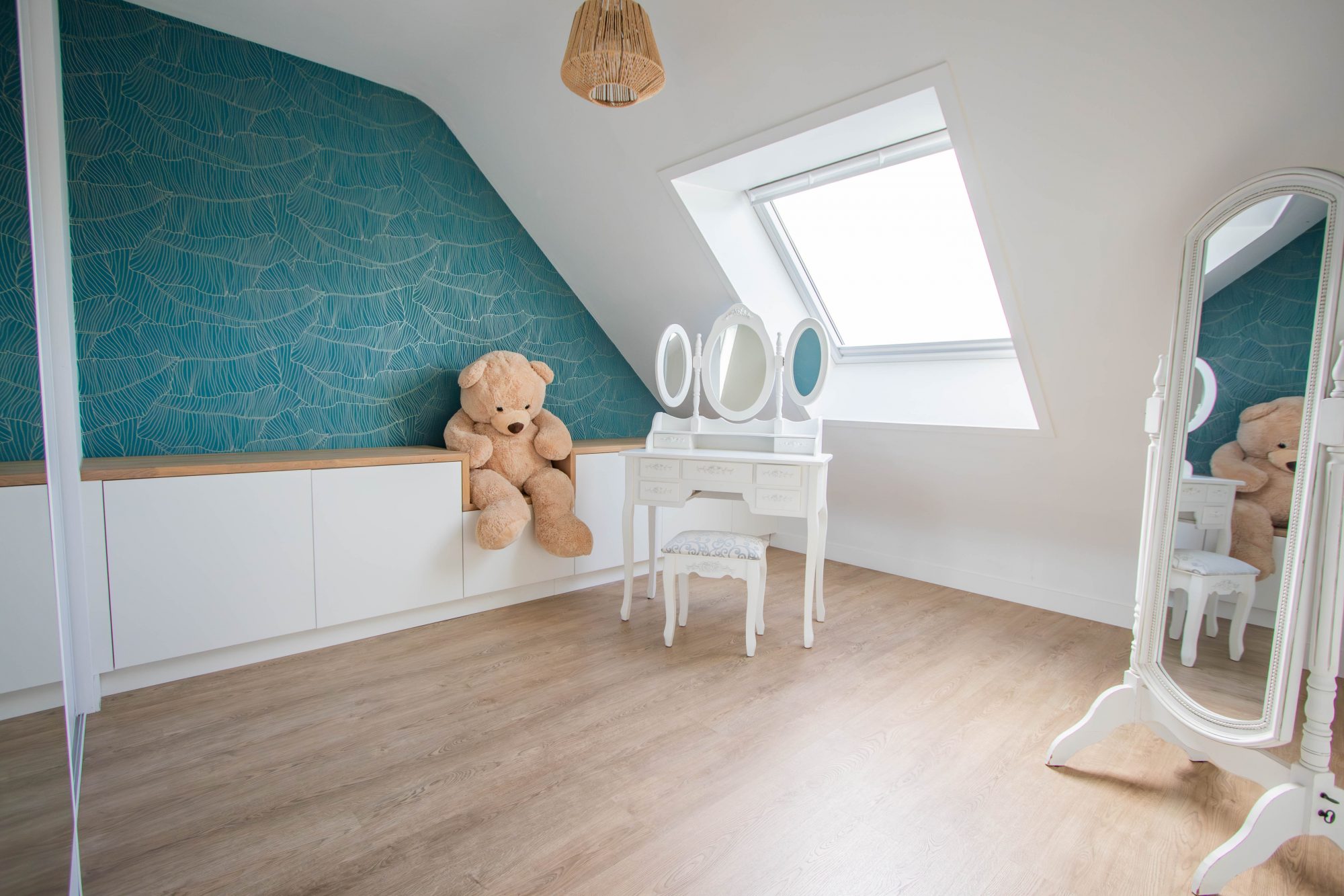 À l’étage, vous trouverez trois chambres spacieuses et un bureau, parfaits pour accueillir toute la famille ou recevoir des invités. Une salle d’eau moderne avec son WC assurent le confort de tous. Une buanderie et une petite pièce permettent d’optimiser le stockage.