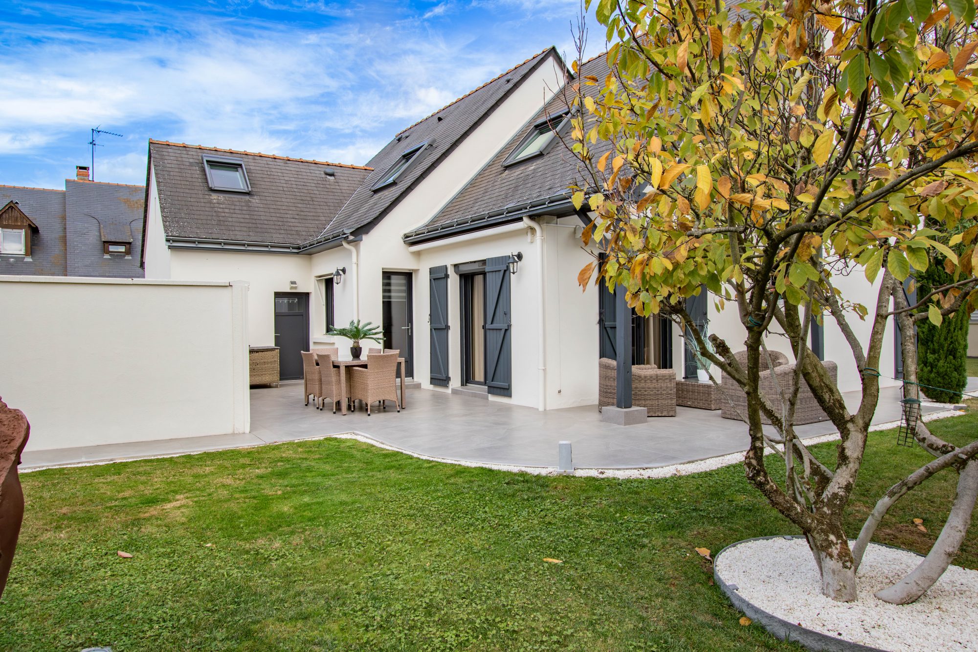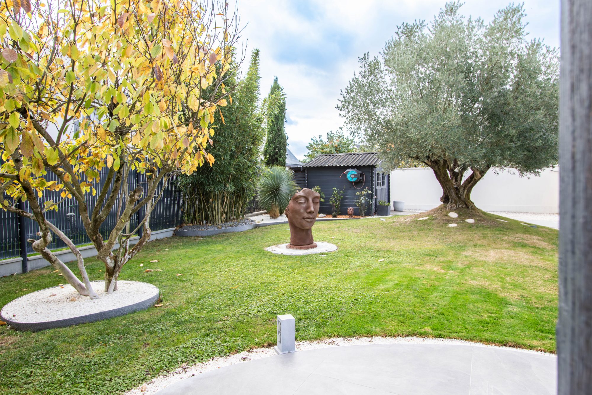 L’extérieur est tout aussi séduisant avec une terrasse et un joli jardin paysagé de plus de 500 m², exposés sud / sud-ouest, vous invitant à la détente. Un stationnement intérieur et des places de parking sont également à votre disposition.