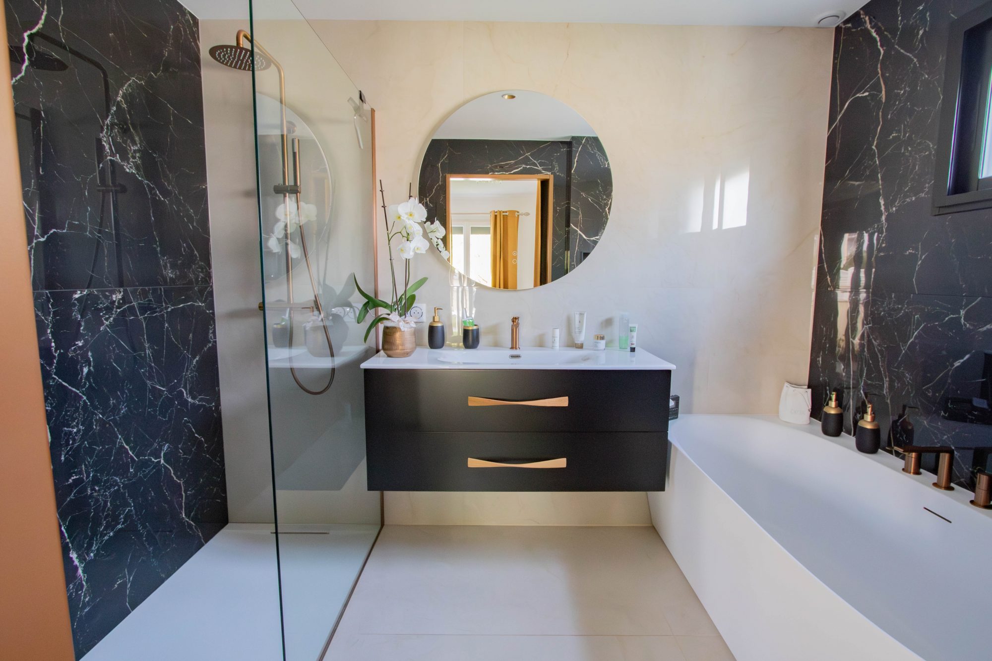 Au rez-de-chaussée, vous serez séduit par le vaste séjour de près de 40m² baigné de lumière, idéal pour des moments conviviaux en famille ou entre amis. La cuisine indépendante, aménagée et équipée, dispose d’un accès direct à la terrasse ainsi qu’au garage. Une suite parentale avec sa magnifique salle de bains et un WC indépendant complètent ce niveau.