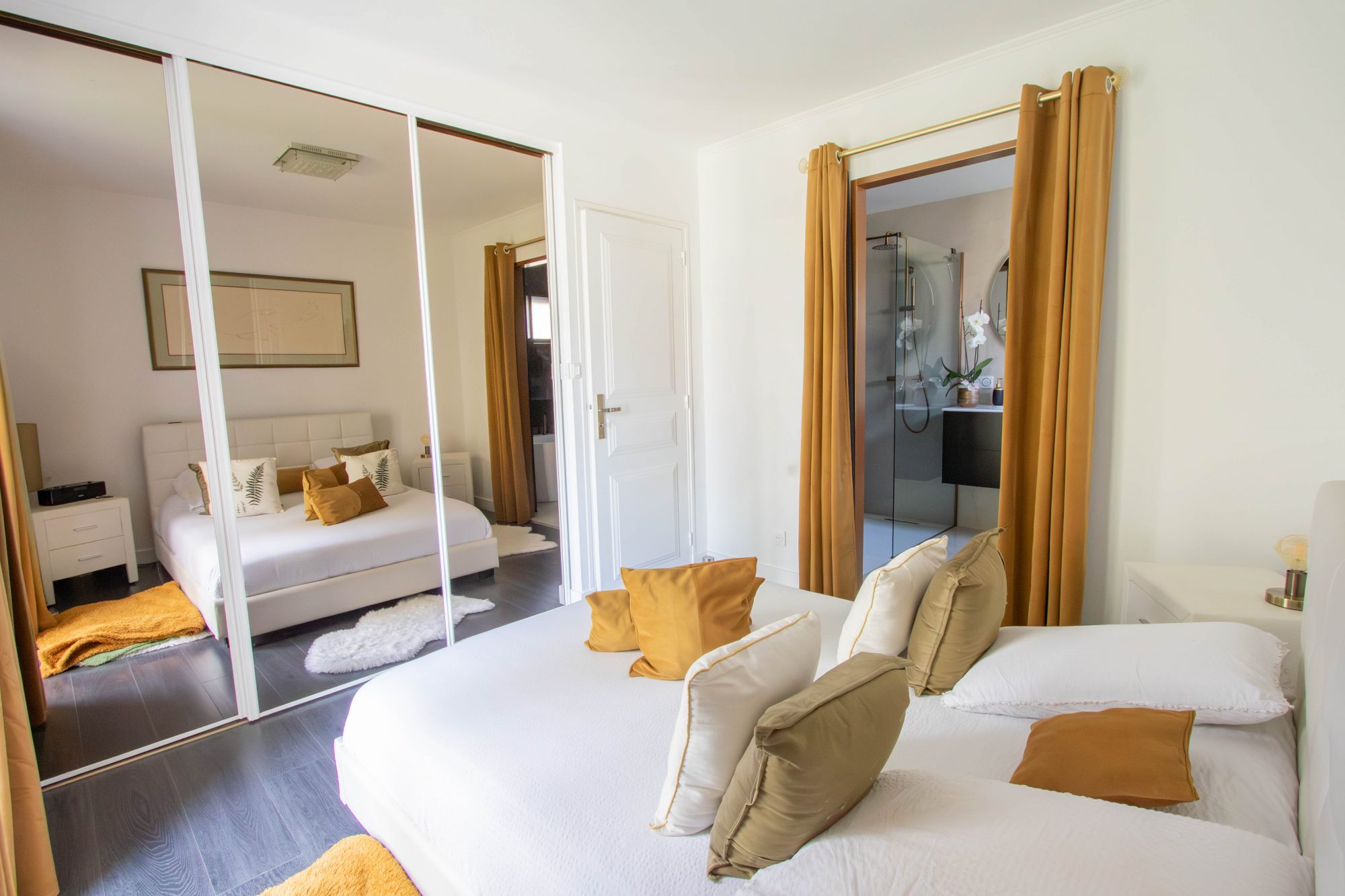 Chambre 1 (suite parentale), placard, accès salle de bains privatives, sur parquet
