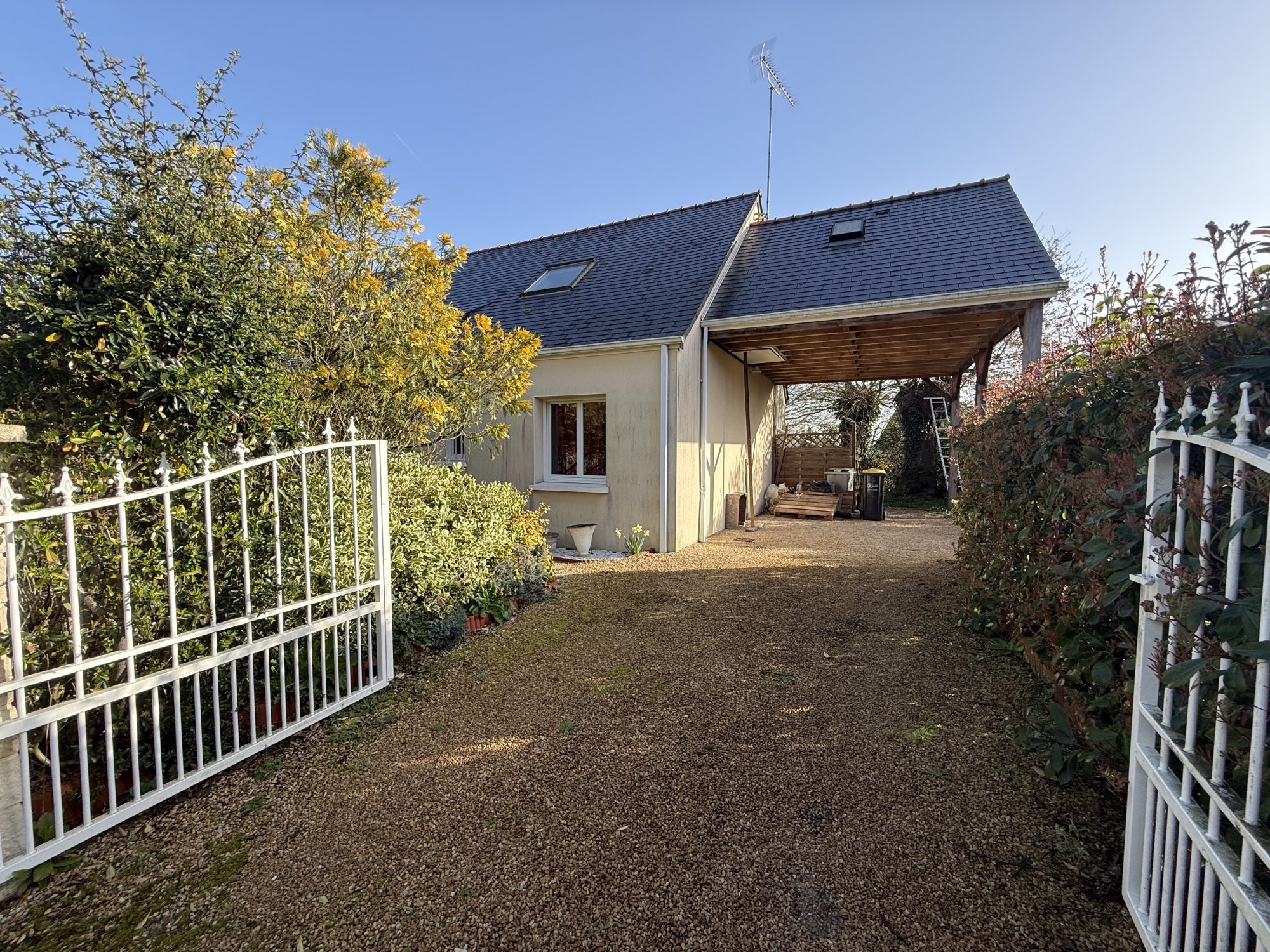 La maison est équipée d’un chauffage individuel et d’un assainissement conforme. Le stationnement est assuré avec un garage et deux places extérieures. L’état intérieur nécessite quelques rafraîchissements, mais cela vous permet de personnaliser votre espace selon vos goûts.