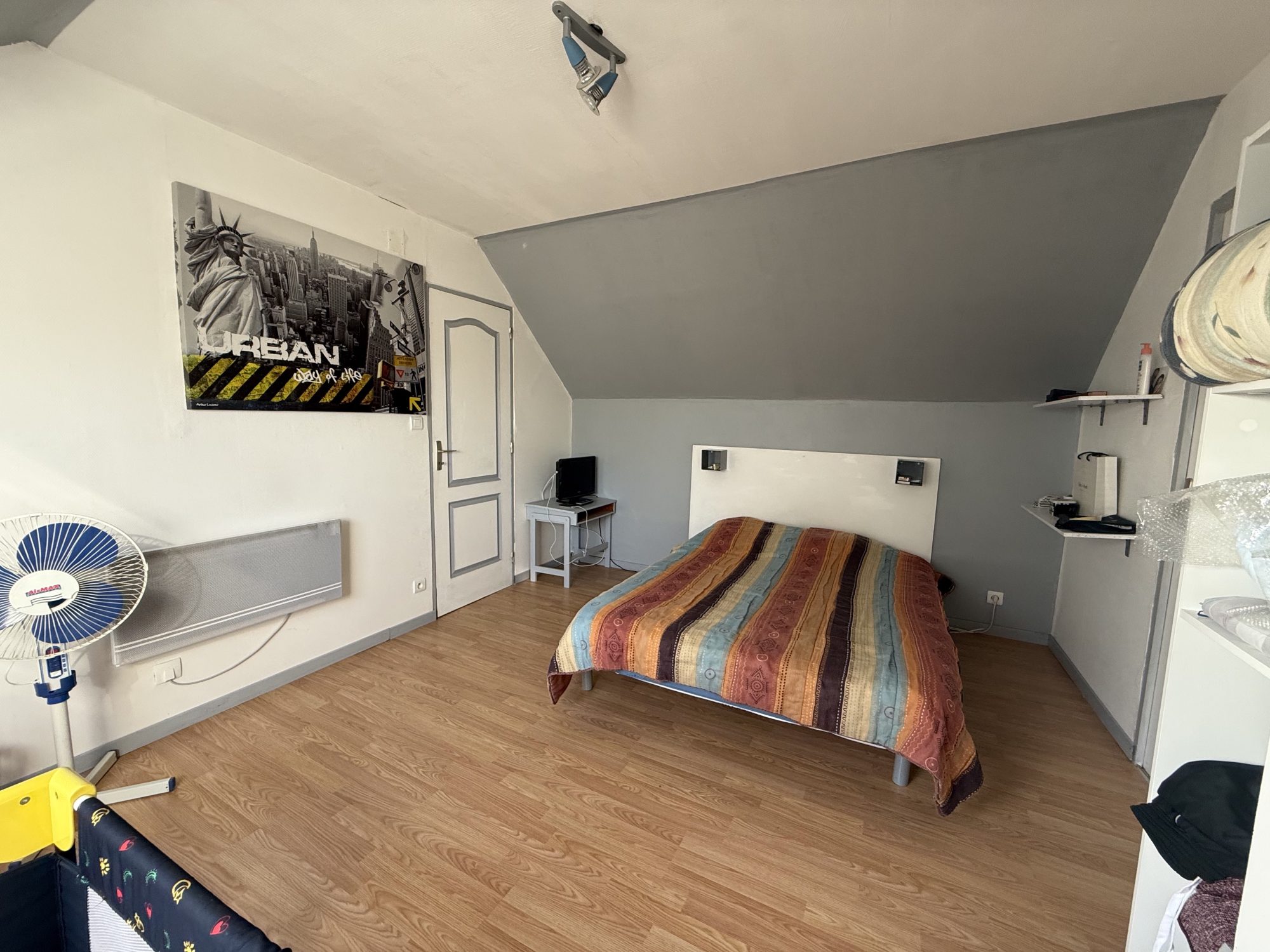 Chambre, parquet, accès grenier (14,46m² au sol)